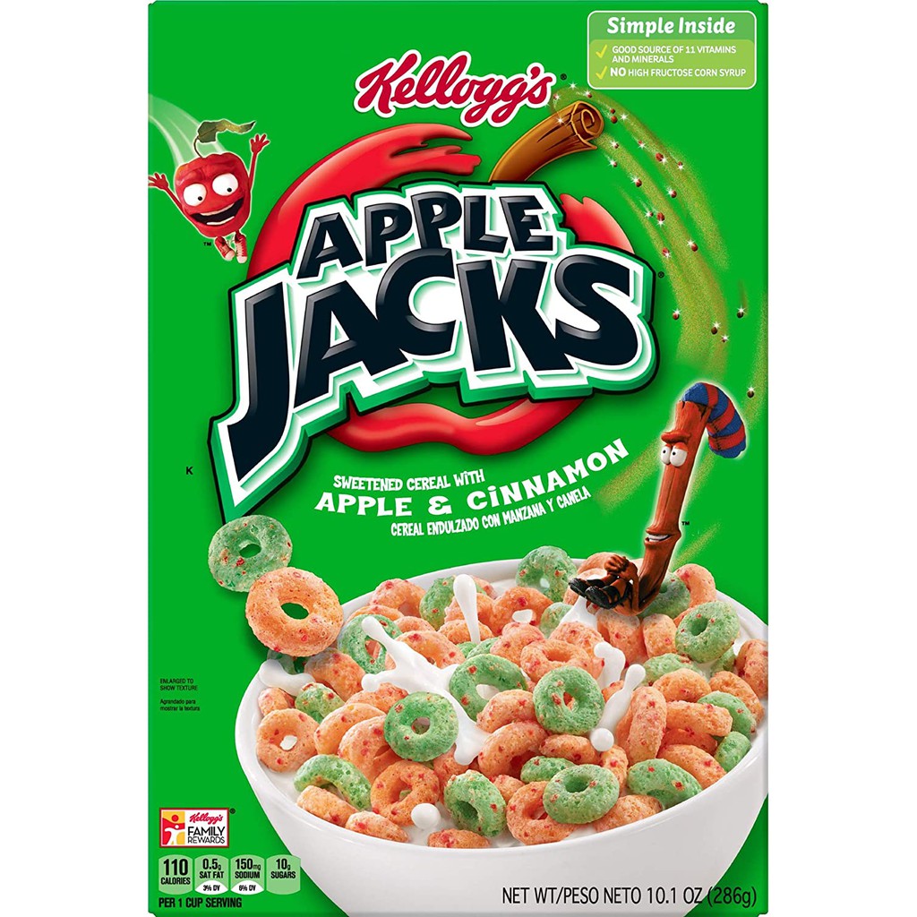 Apple Jacks - Wikipedia Apple Jacks is an American brand of breakfast cereal that is produced by Kellogg's and targeted mainly at children. ... Nutrition. According to the label on the box, in 2010, each 28 gram serving had 100 calories, three grams of dietary fiber, and 12 grams of sugar. Carbs in Apple Jacks Cereal - Carb Manager