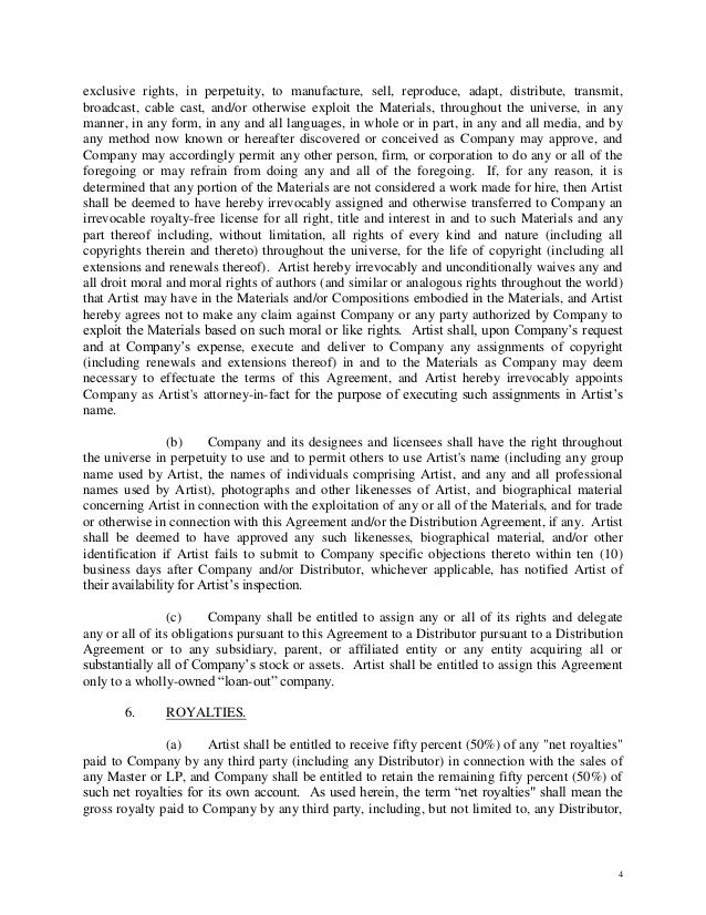 Record Label Contract Sample.rtf - Google Docs Company and Artist wish to enter into this Agreement to provide for the production and distribution of the Recording. IT IS, THEREFORE, AGREED AS FOLLOWS: A. TERM. The effectiveness of this...