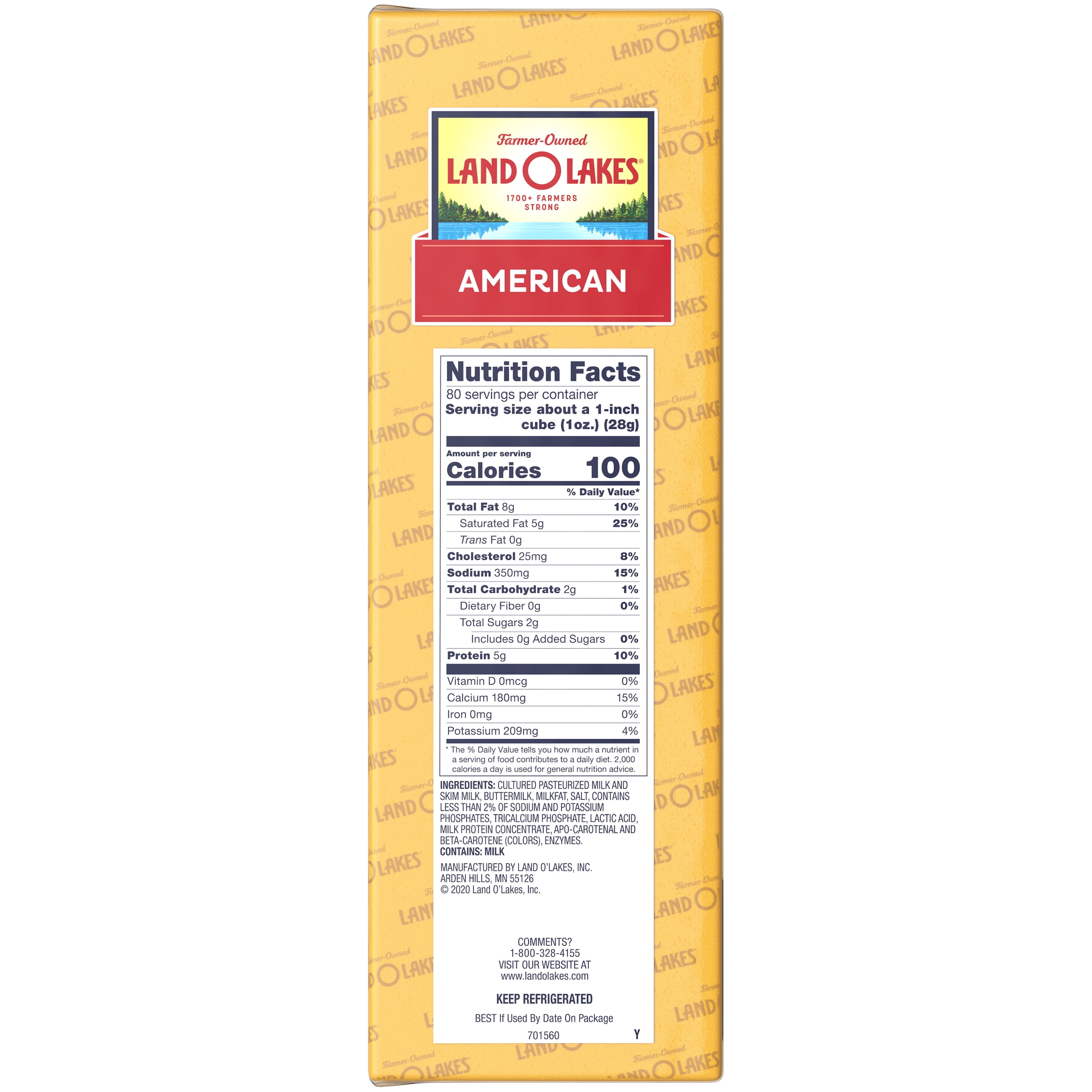 White American Cheese Product - Land O'Lakes White American Cheese Product. net wt. 8 oz. 00034500446884. Nutrition; ... Land O'Lakes is updating the Nutrition Facts panels on its products to comply with new FDA regulations. During this transition, both old and new versions of the Nutrition Facts panel will be in the marketplace. Refer to the label on your product for the most accurate ...