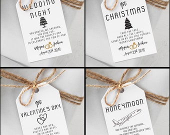 Milestone Wine Tags | Etsy Wedding Milestone tags Milestone Wine Labels Wine Basket Tags Bridal shower gift Engagement gift wedding Wine poems set of 12 PRINTABLE DesignMyPartyStudio (14,662) $7.28 $12.13 (40% off) Marriage Milestones Wine Labels, Wedding Milestones, A Year of Firsts LabelYourLife (3,306) $4.00 More colors