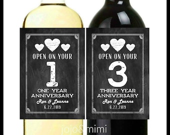 Personalized Wine Label 'Open on your Anniversary' 1,3,5 10 Year Printable Anniversary Wine Label or Tag Wedding Wine Milestone