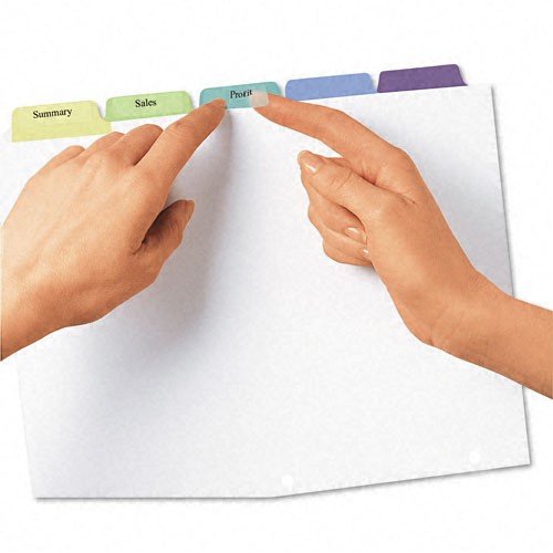Avery IndexMaker Print & Apply Label Dividers, 5-Tab, Clear, 5/Pack (11436) Long-lasting, tear-resistant tabbed dividers feature doubled-sided reinforced tabs and edges Tab dividers let you organize projects, personal documents, and more Clear color for an attractive look Dimensions: 11"L x 9.0625"W Three-hole punched and ready for use Five tabs per set, five set per pack Tear-resistant for safe keeping Consistent Results