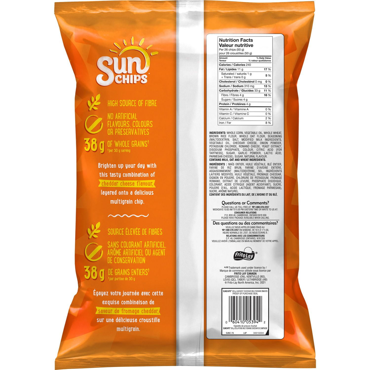 SunChips Whole Grain Snacks, Original, 7 oz - Walmart.com Nutrition facts. Refer to the product label for full dietary information, which may be available as an alternative product image. 7 Servings Per Container. Serving Size 1 oz ... Kids love the the original sun chips with the multigrain and the fiber in the chips. Angela. 5 out of 5 stars review.