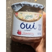 Oui Yogurt: What Is 'French Style' Yogurt And Should You Try It? Strawberry Oui has much less protein than any Greek fruit-on-the-bottom style yogurt: 5 grams compared to between 11 and 12 grams. But compared to traditional yogurt with fruit on the bottom, there's a significant difference on the sugar count. Dannon's Strawberry Fruit on the Bottom holds 22 grams of sugar, while Oui & Chobani only carry 15.