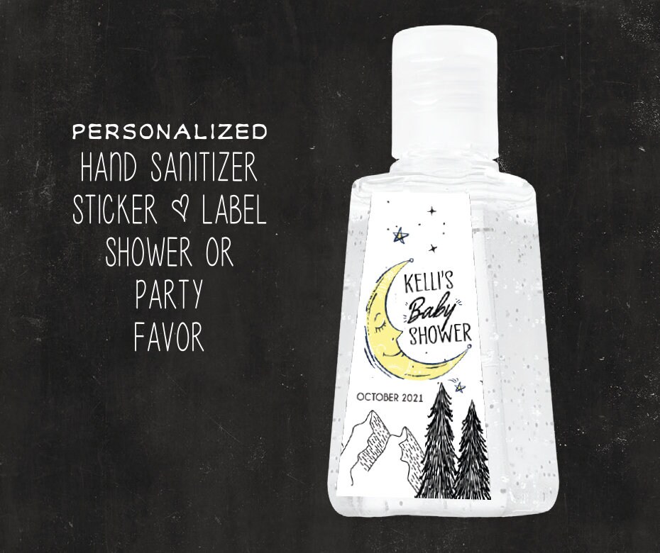 Printed Personalized Labels | Moon & Stars Hand Sanitizer Label | Modern Mountain Sanitize Sticker | Stars Baby Shower Favor