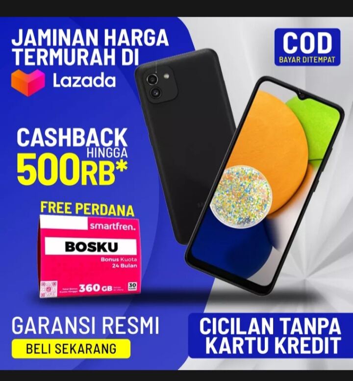 Jual SAMSUNG A03 4/64GB GRS RESMI SAMSUNG Biru Happy Phone
