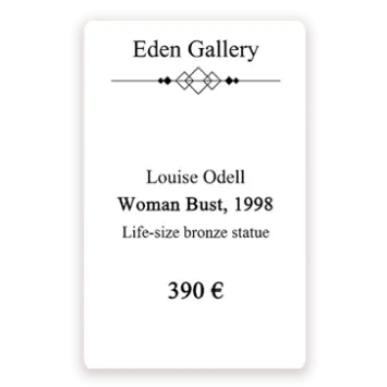 Creating art labels profesionnal for exhibitions | Evolis Placed near the artwork, the purpose of the label is to provide information in a discreet and straightforward way, without distracting from the exhibited piece. The label often features the name of the artist, the title of the work, its dimensions, the techniques employed, and the year it was made.